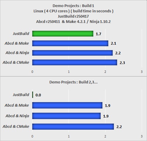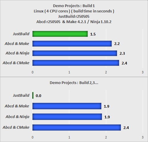 Both Abcd and JustBuild manage dependencies between projects and within each project.